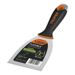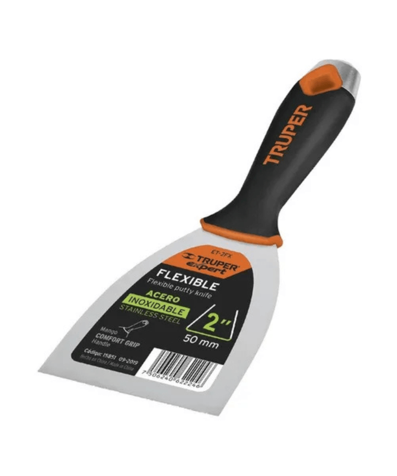 La **Espátula de Acero Inoxidable (76 mm)** con mango de **TPR (Goma Termoplástica)** es una herramienta de mayor ancho que la estándar, ideal para la aplicación rápida y uniforme de masillas y enduidos en superficies más grandes. El acero inoxidable previene el óxido y mantiene la hoja en óptimas condiciones para un acabado liso.