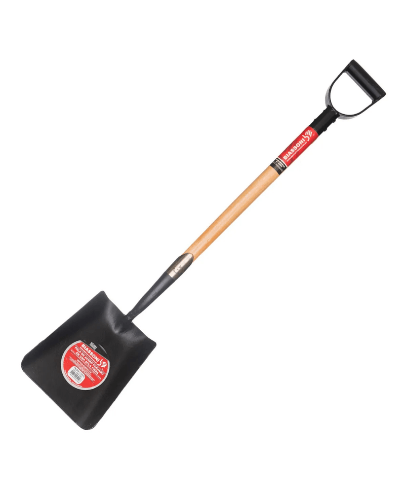 La **Pala de Punta Cuadrada Biassoni (Largo)** es una herramienta manual de hoja recta y mango largo, ideal para **cargar, mover y recoger materiales sueltos** como arena, tierra, cascotes o cemento. Su diseño cuadrado es perfecto para limpiar superficies planas y para mezclar materiales en el suelo o en carretillas.