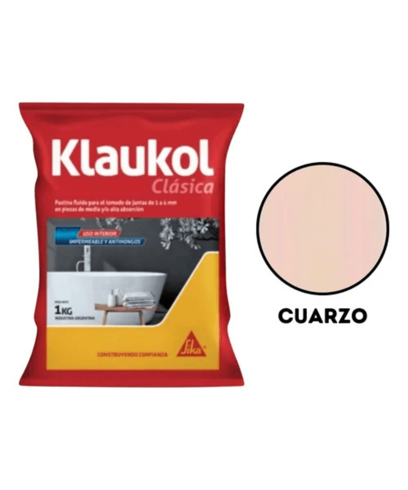 La Pastina Klaukol para Porcellanato en color **Cuarzo** y presentación de 1KG es un mortero de junta de alta gama, ideal para el sellado de uniones en porcelanatos y cerámicos. Su composición garantiza una baja porosidad, resistencia a la humedad y una limpieza fácil, manteniendo las juntas impecables a lo largo del tiempo.