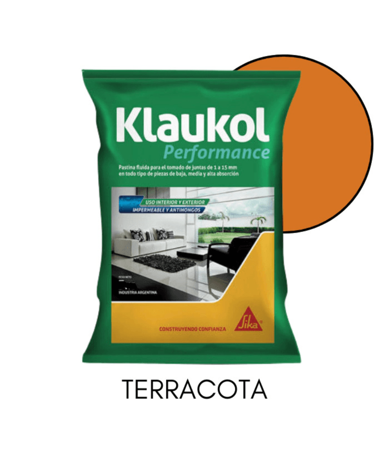 La Pastina Klaukol para Porcellanato en color **Terracota** y presentación de 1KG es un mortero de junta de alto rendimiento diseñado para rellenar las uniones entre placas de porcelanato y cerámicos. Su fórmula especializada minimiza la absorción de agua, previene la formación de hongos y asegura una excelente adherencia y durabilidad del sellado.